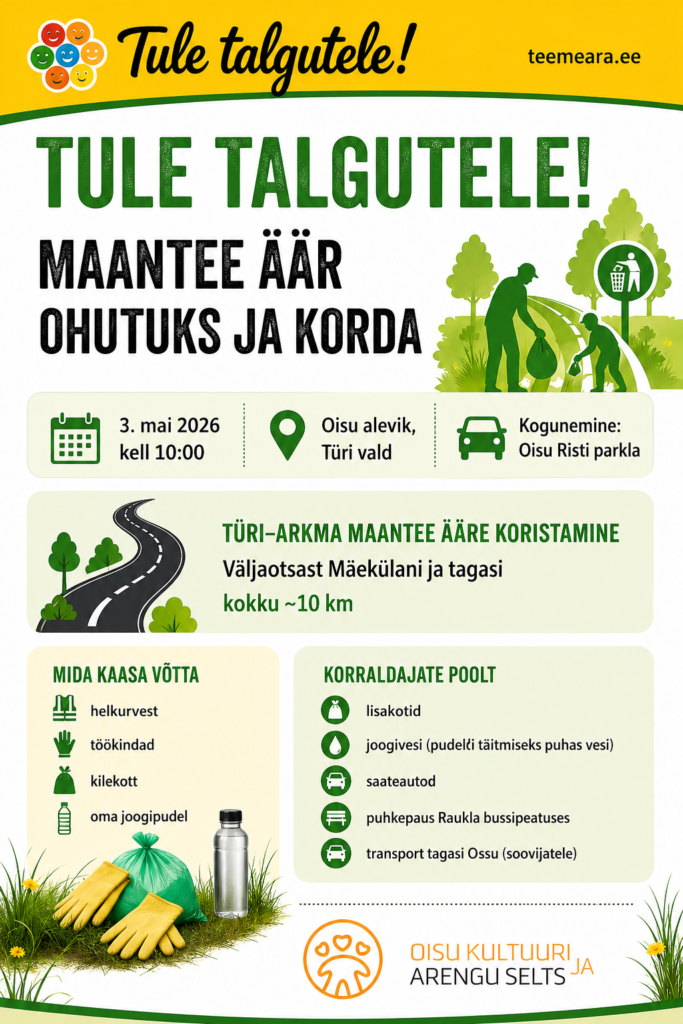 Tule appi korrastama meie kodukoha teedeäär! 💚