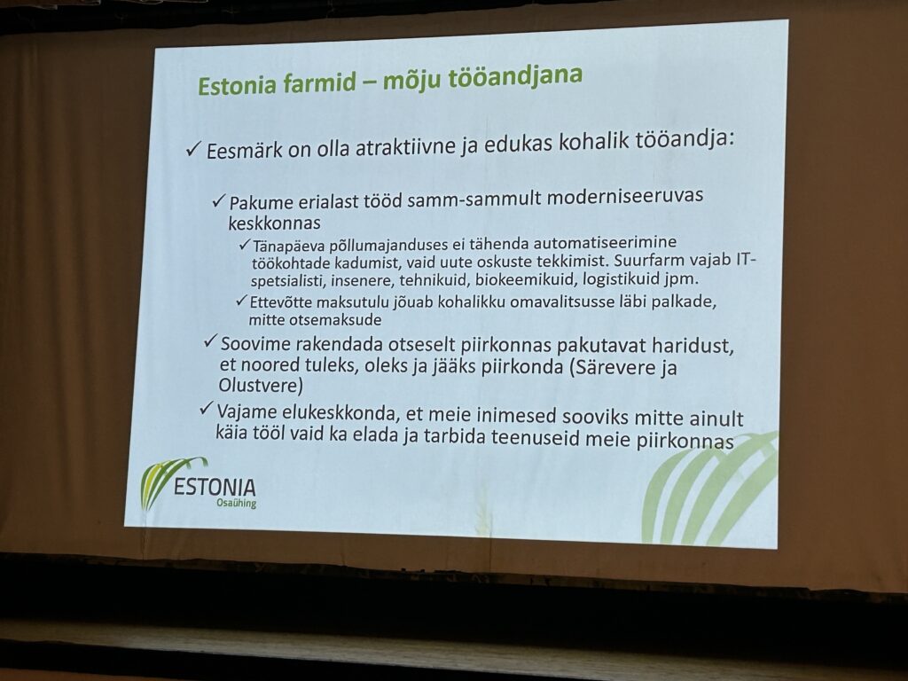 Mõttetalgud juhatasid sisse OÜ Estonia uued juhatuse liikmed Martin Paukson ja Tanis Kulp, kelle jaoks oli oluline tutvustada kohalikule kogukonnale ennast ja rääkida ka Estonia Farmide uue omaniku OÜ Infortar Agri plaanidest. Nende põhiplaanid puudutavad loomulikult piimatootmist ja selle arenguid: soovitakse moderniseerida farme, areneda edasi, hoida korras oma ümbruskond ja luua kõrgema kvalifikatsiooniga töökohti. Nad loodavad olla katalüsaatoriks, et piirkonda laiemalt saaks tekkida põllumajandust toetav ja kohalikku elu edendav ettevõtlus. Maailmatasemel tehnoloogiad loovad aluse, et ettevõttes töötavaid inimesi saab väärikalt tasustada ja ettevõtte tegevusega kaasnev sidusettevõtlus loob elukeskkonda, et noored ei läheks ära ja näeks just siin oma tulevikku.