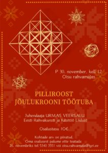 Tähistame advendiaja algust ühe mõnusa töötoaga! Pilliroost rookrooni õpituba ühendab Eesti käsitöötraditsioonid, looduse ilu ja tänapäevase taaskasutusmõtteviisi. Käsitsi tehtud pilliroost kroon pakub silmailu ja hingele elamust ning nagu juba meie