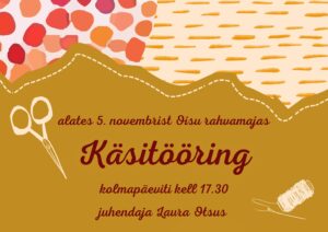 Alates 5. novembrist alustab uut hooaega Käsitööring Oisu rahvamajas kolmapäeviti kell 17.30